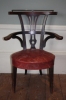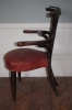 A most unusual reading chair in cherry, circa 1800. Reading action unfortunately missing but brass bar to top rail remains. Upholstered in reclaimed 19th century leather.