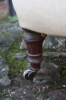 Late 19th century upholstered chair with turned mahogany legs and brass and china casters, circa 1870.