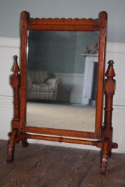 Aesthetic movement swing-frame dressing mirror in the style of Charles Bevan, circa 1880. Made from figured brown oak with ebonising and original mirror plate. Very good colour.