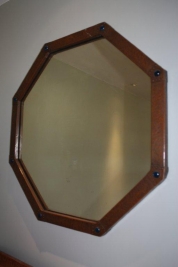 Arts and Crafts octagonal mirror in beaten copper with glass dome detail, circa 1910.